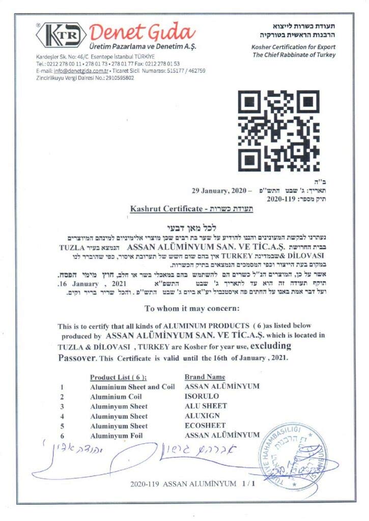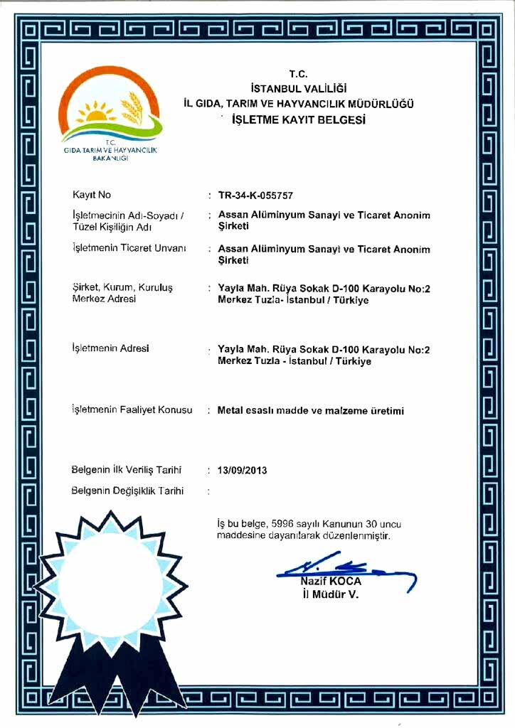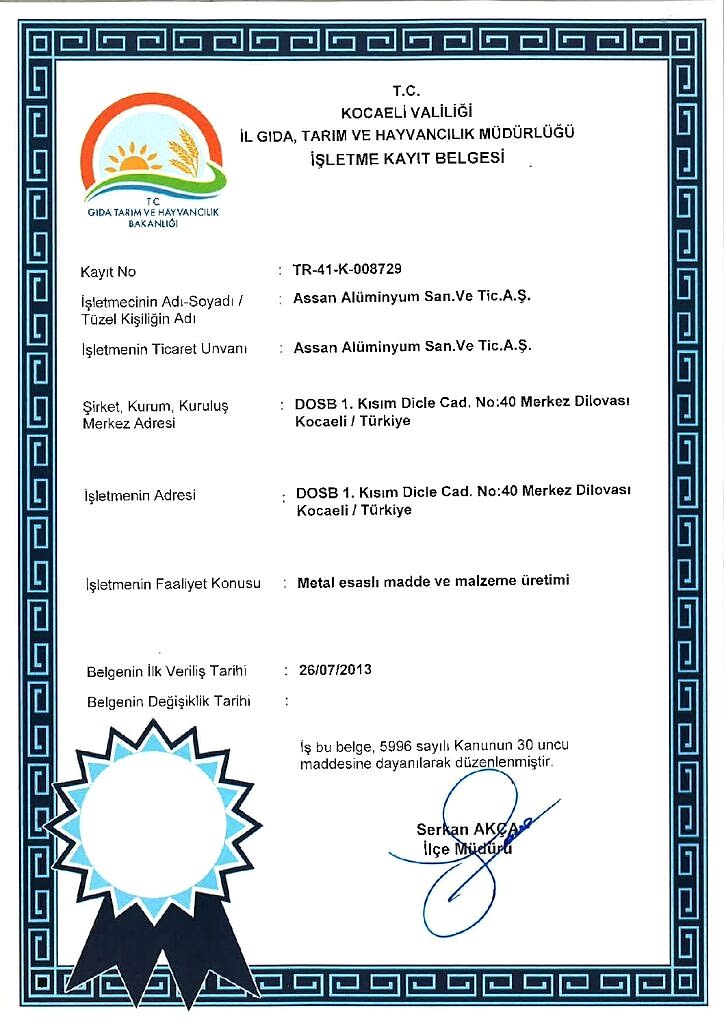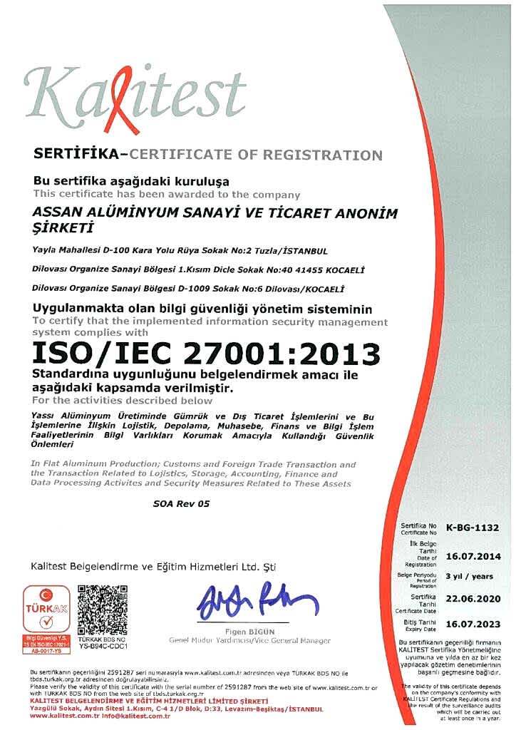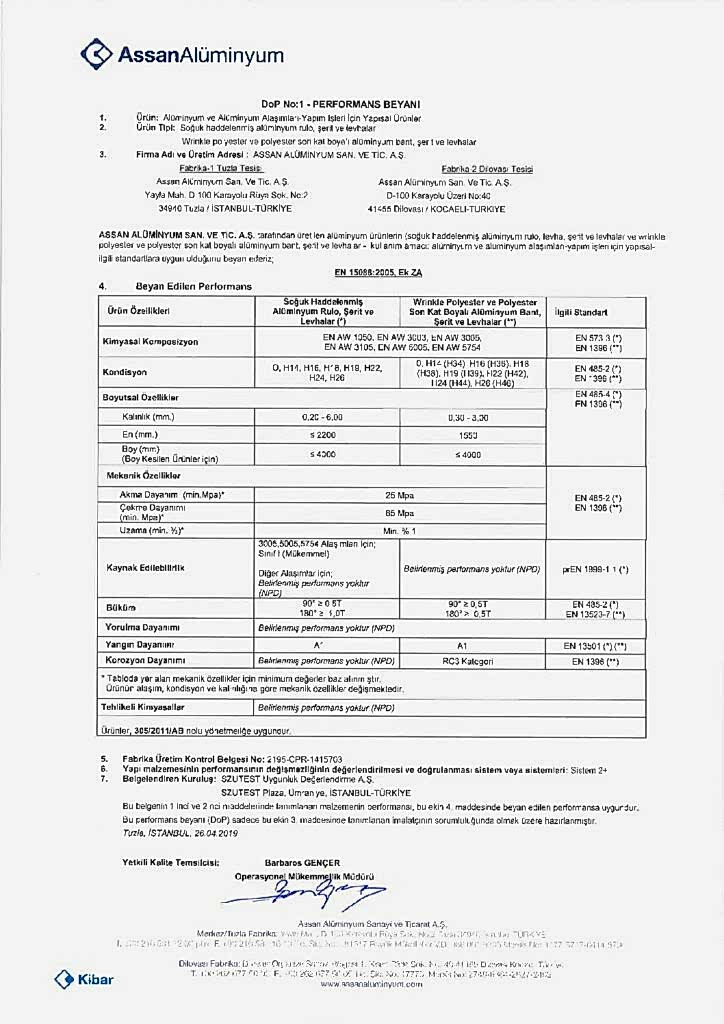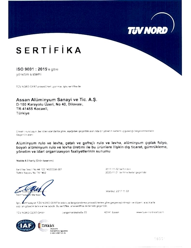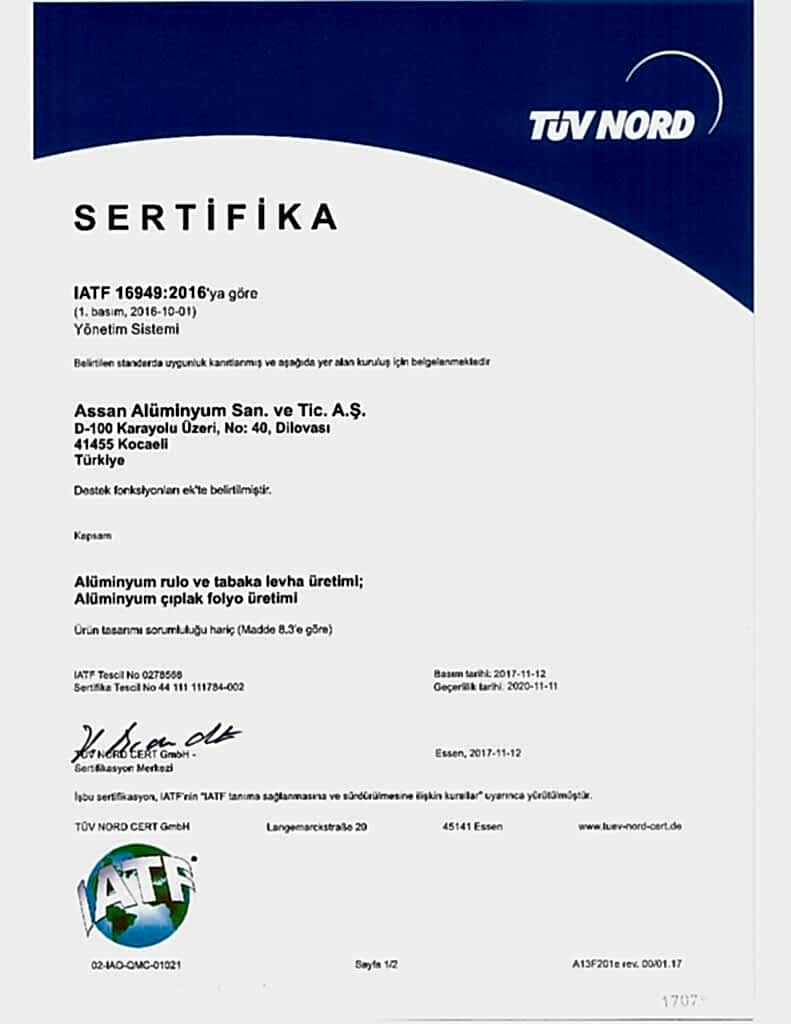 TSE Uygunluk Belgesi(TS EN 485-1 A1) Dilovası