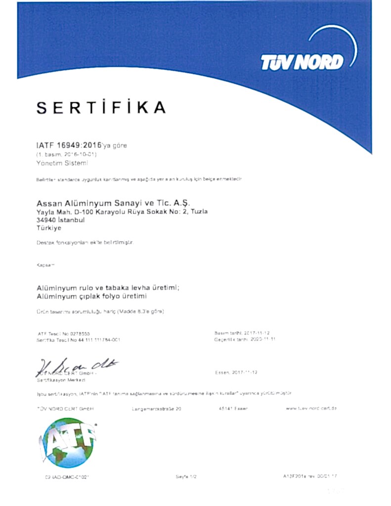 IATF 16949:2016 Otomotiv Kalite Yönetim Sistemi Belgesi (Dilovası)