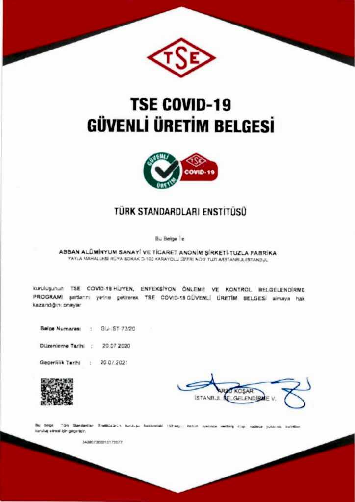 TSE COVID-19 Güvenli Üretim Belgesi - Tuzla